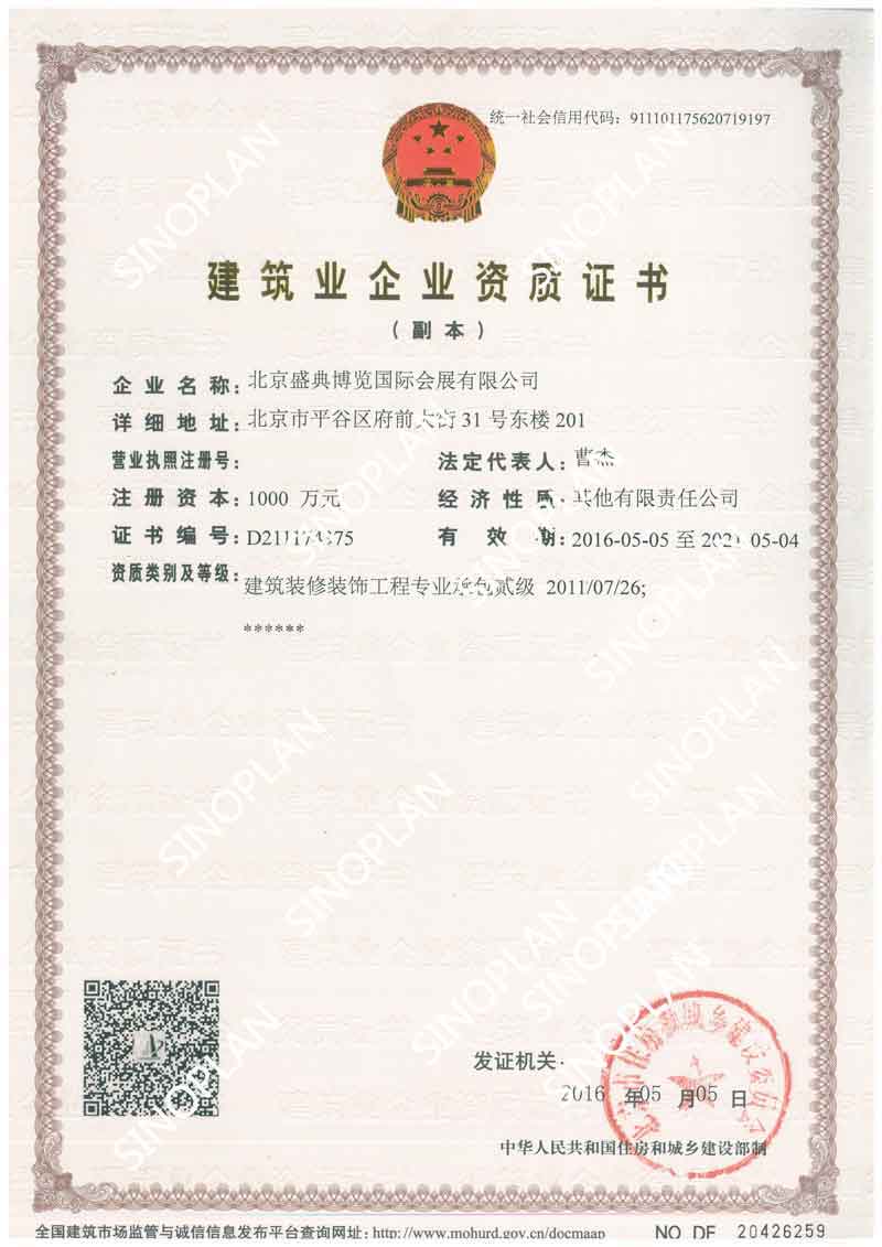 北京盛典博覽國際會展有限公司,注冊資本1000萬元,是中國國際展覽中心指定的主場運營設計施工單位之一,是中國展覽設計施工一級資質單位之一,建設部頒發建筑裝飾二級資質,北京市會展定點采購單位,通過了ISO9001質量管理體系認證和ISO14001環境管理體系認證。公司是集展會策劃、策展、主場運營、搭建、特裝設計、展廳規劃館、博物館空間設計和實施為一體的“一站式”專業會展服務的會展公司。