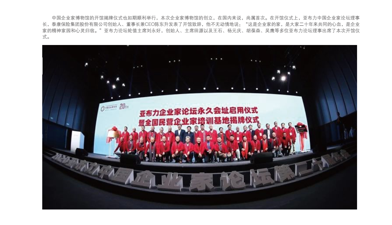 亞布力企業家論壇永久會址正式舉行啟用儀式